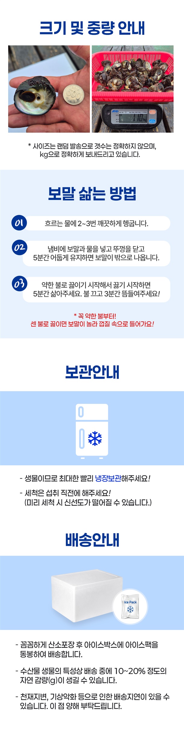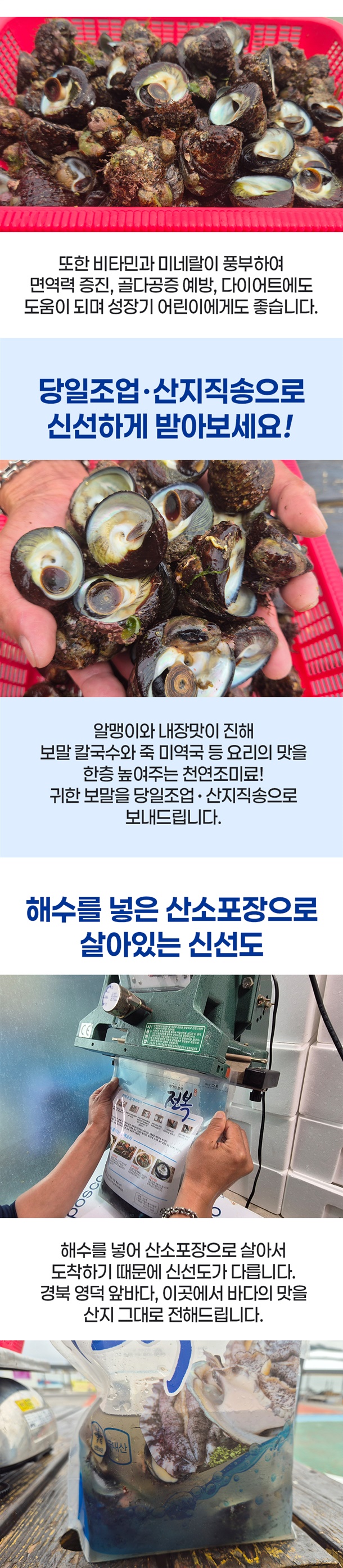 잠수부 직접채취 산소포장으로 신선도 업!